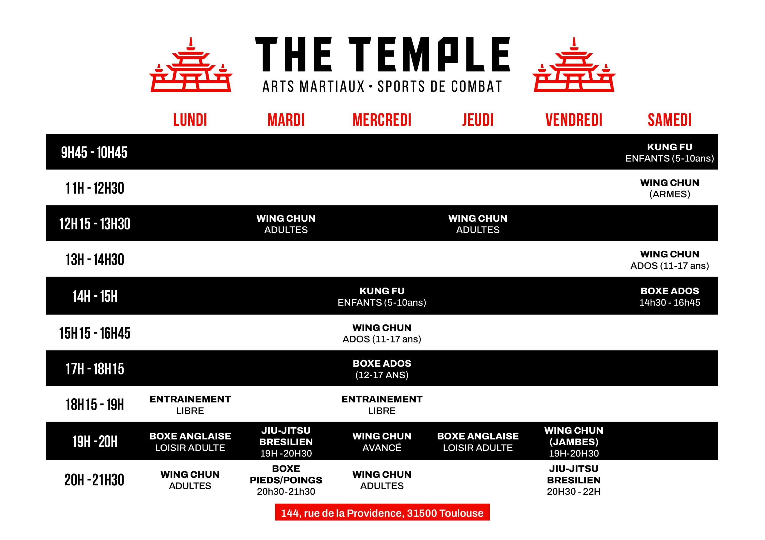 Lundi et jeudi (boxe anglaise) : 19h à 20h